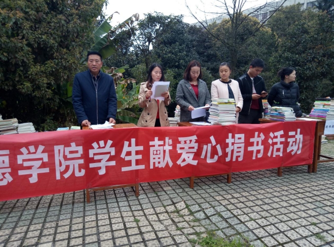 新闻网讯(团委 陈宗发)为丰富校园文化,促进书香校园氛围,3月29日,我院学生工作部在茶店校区图书馆门口举办了“倡议学生献爱心捐书活动”。院党委副书记金明辉、学生工作部副部长李忠红、各系总支书记及数百名爱心捐赠者参加了捐书启动仪式,李忠红老师主持启动仪式。