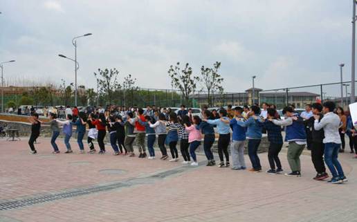 新闻网讯(陈菊 余宇娇/摄影 刘梅)在大三学长学姐与新区同学大团聚之际,我系团总支学生会成员热情欢迎,4月5日,我系在新区校园举办了“快闪”—追梦活动。