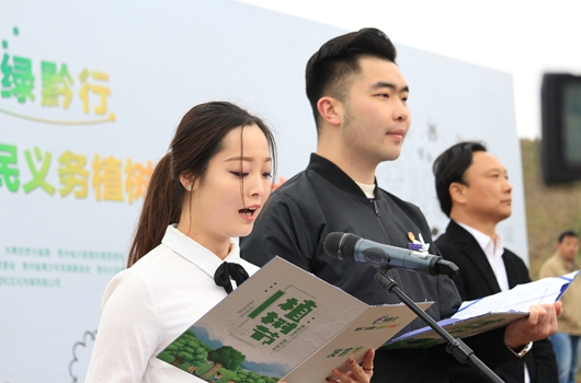 我院青年大学生代表罗一檾、李彤宣读贵州“互联网+全民义务植树”倡议书,让更多大学生体会到人与自然和谐共处的重要意义。