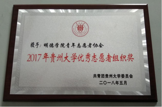 近年来,我院志愿服务工作在院团委的指引下蓬勃发展,积极构建具有时代特点、青年特征、明德特色的志愿服务工作长效机制。在志愿服务的路上我们从来没有停下,长期组织同学支教、定期慰问孤寡老人等。去年我院荣获“2017年度贵阳地区高校无偿献血志愿服务二等奖”。