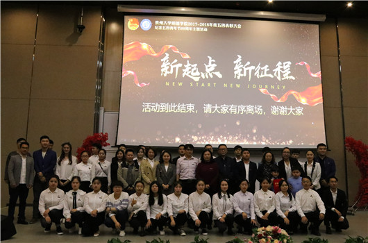 新闻网讯(团宣 杨东引/摄影 刘琴飞 王艳)5月4日,学院在图书馆报告厅举行以“赞扬五四、展现青春”为主题的活动。出席本次活动的嘉宾有常务副院长罗卫东,副院长谢静,党委副书记金明辉,院长助理兼学生工作部部长宿强,院长助理、数字传媒系系主任康俊,学院办公室副主任董婕,学生工作部副部长张吉林。各系代表老师以及同学参加本次活动。此次活动由共青团贵州大学明德学院委员会主办。