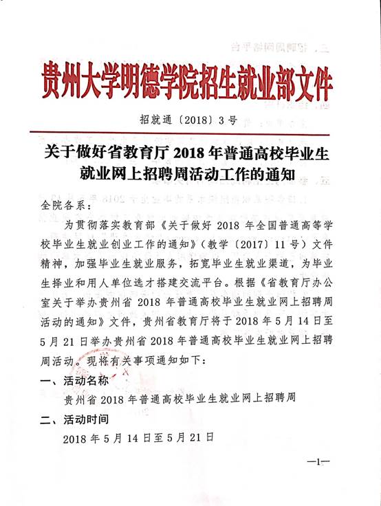 关于做好省教育厅2018年普通高校毕业生就业网上招聘周活动工作的通知