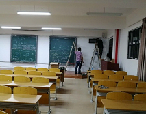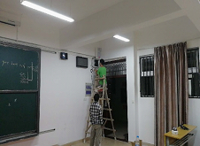 实施前,现代教育中心的崔老师与万华工程师一同对A至F栋教学楼进行实地考察,并规划了施工方案,由于教室白天要进行正常教学,因此现教中心崔老师与工程师每晚加班加点对教室进行施工。力争本学期英语四六级考试投入使用。