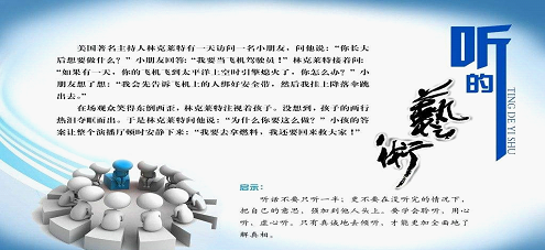 更要学会倾听,沟通是双向的,我们并不是单纯的向别人灌输自己的思想,我们还应该学会积极的倾听。倾听不是简单地用耳朵来听,它也是一门艺术。倾听不仅仅是要用耳朵来听说话者的言辞,还需要一个人全身心地去感受对方的谈话过程中表达的言语信息和非言语信息。每个人都可以透过耐心和练习来发展这项能力。倾听是了解别人的重要途径,为了获得良好的效果,我们有必要了解一下倾听的艺术。
