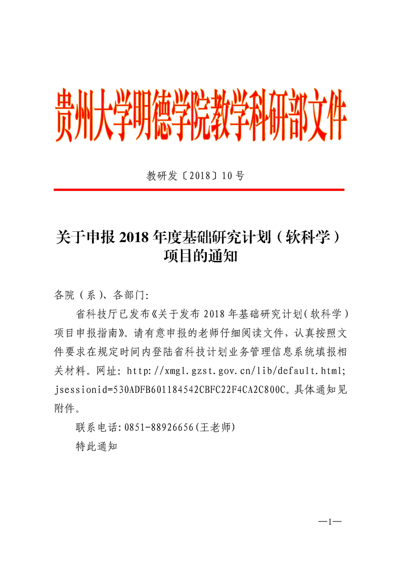 关于申报2018年度基础研究计划(软科学)项目的通知