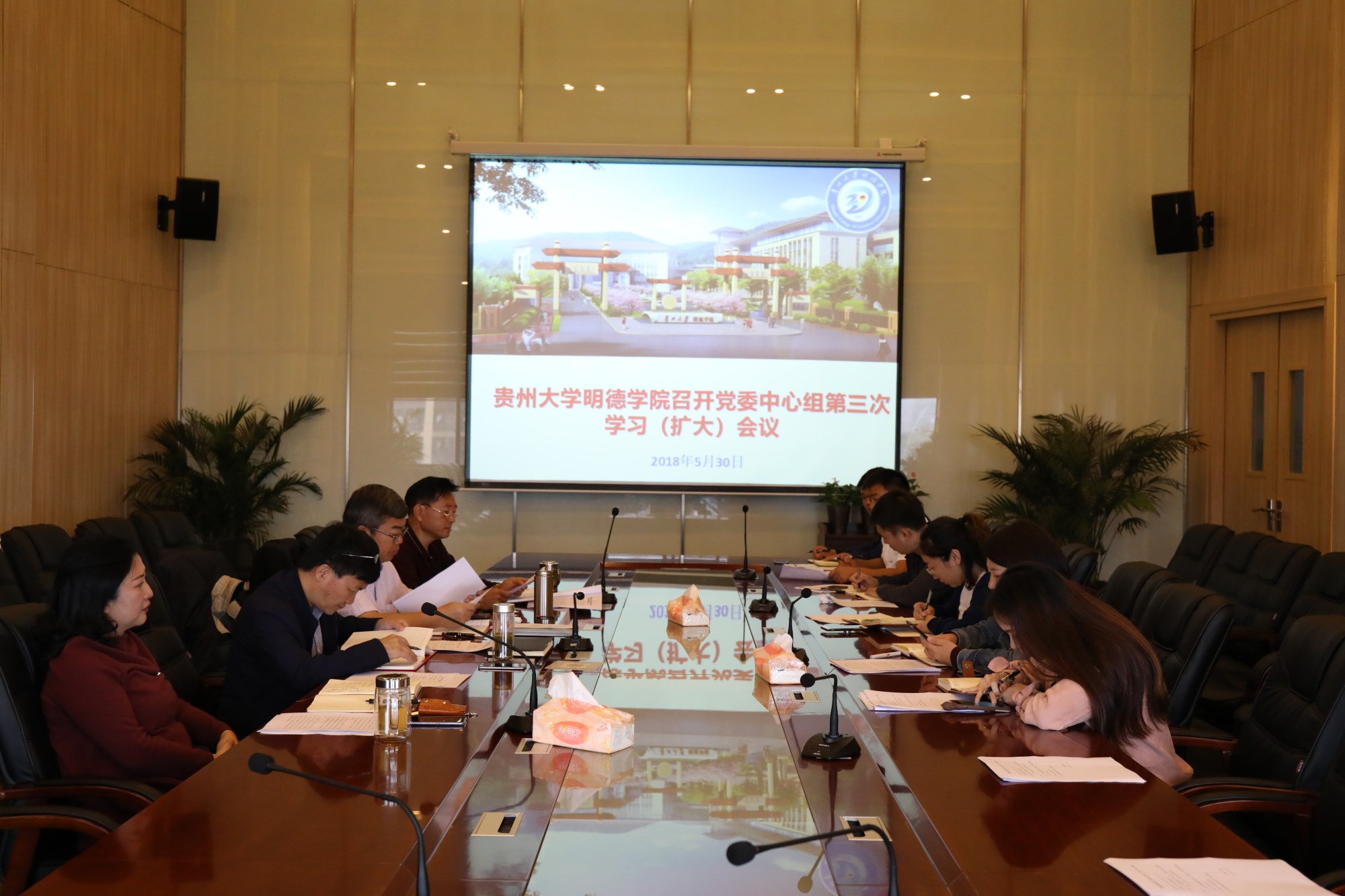 新闻网讯(党群工作部 孙腾蛟)5月30日下午,学院党委在图书馆五楼会议室召开中心组第三次学习(扩大)会议,全体党委委员、各党总支副书记/负责人、机关教工党支部书记以及学院办公室、党群工作部等主要负责人参加本次学习(扩大)会议。