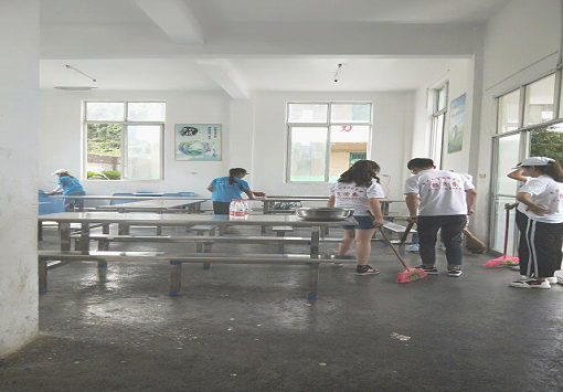 我们两个系分别派出同学去打扫食堂,打扫操场和教室,干得热火朝天。经过同学们的齐心协力,我们终于收拾完毕。