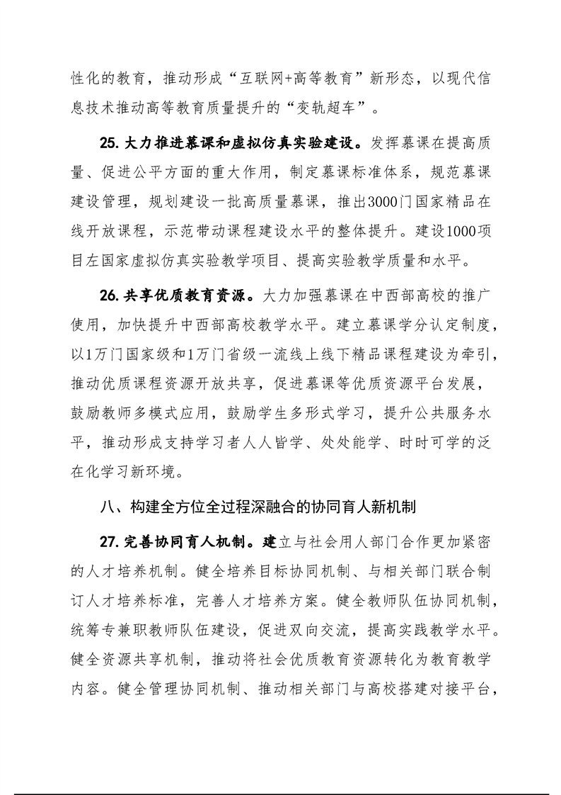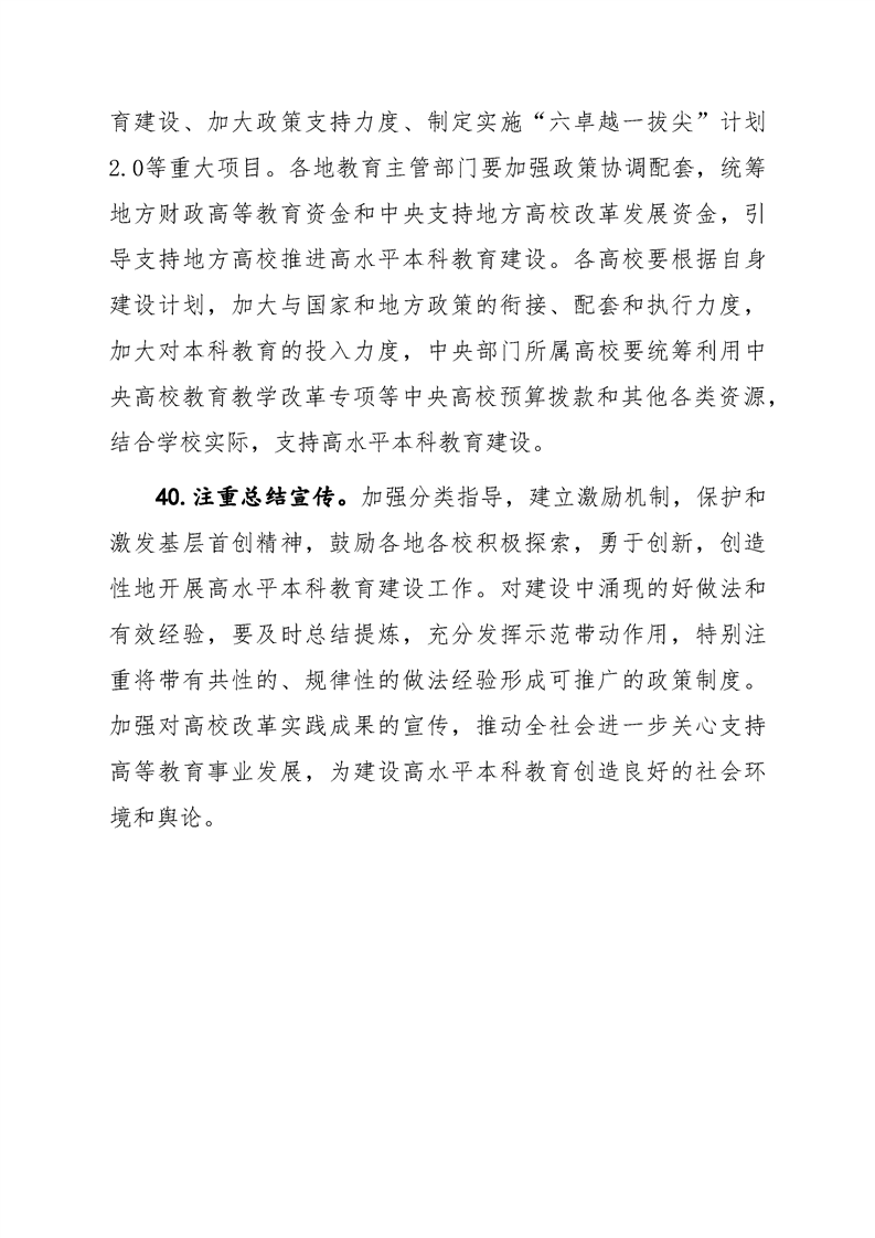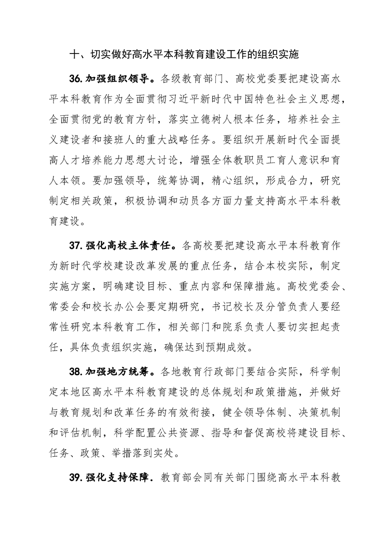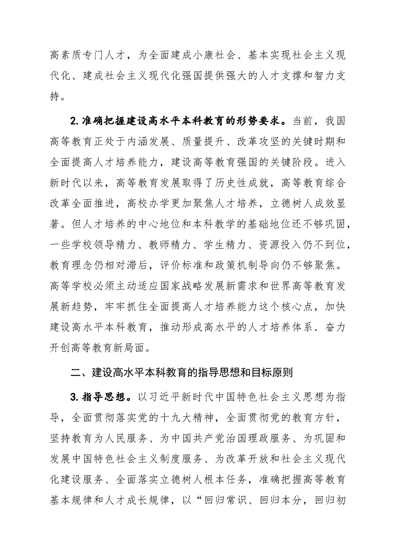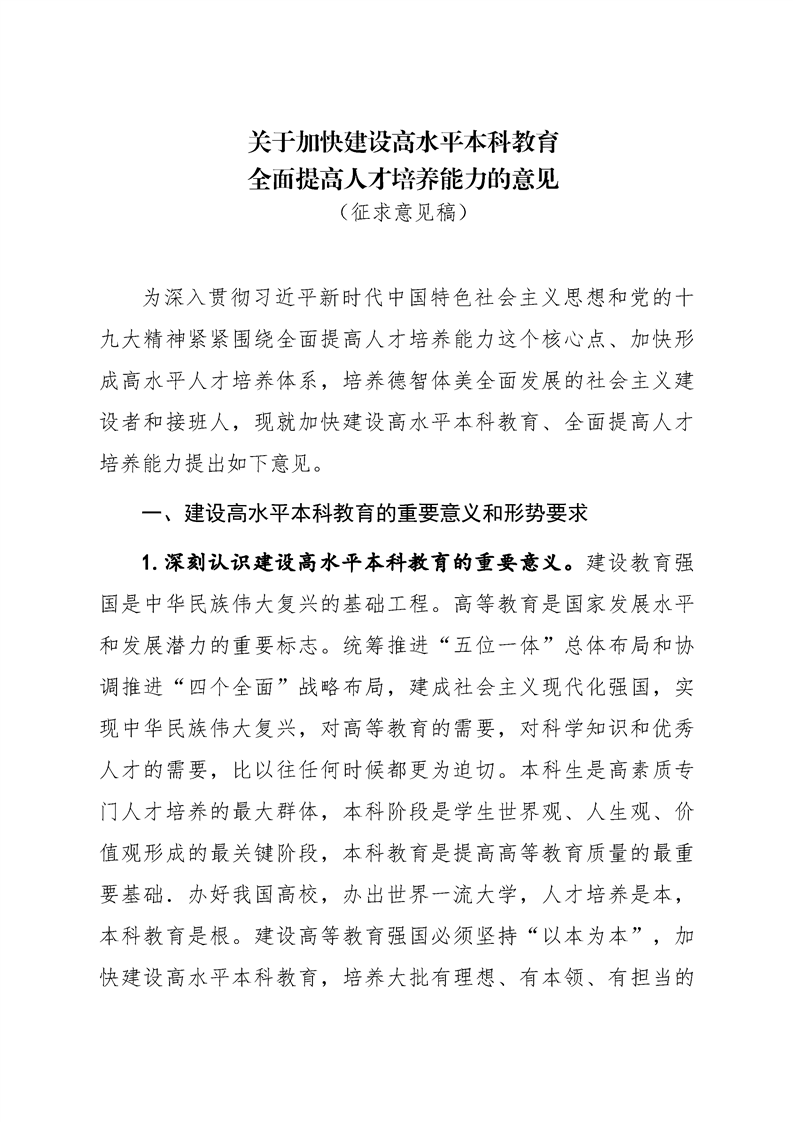 关于加快建设高水平本科教育 全面提高人才培养能力的意见