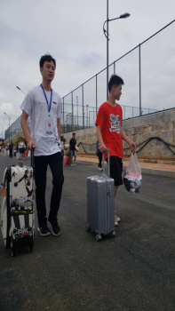 早上7点,我系的辅导员丁操老师、李燕琴老师以及我系的35名志愿者来到迎新地点进行着最后的准备。7点30分,万事俱备,只待萌新。随着时间的流逝,越来越多的我系学子带着行囊迈着轻快的步伐出现在我系报到注册点,注册组的志愿者娴熟的操作着电脑给萌新们进行注册,为家长以及小萌新答疑解惑;机动组的志愿者则是带着我们的小萌新缴费、领取校园卡、领取军训服、入住寝室;后勤组的志愿者则默默的在家长休息区“守护”着萌新们的行囊。