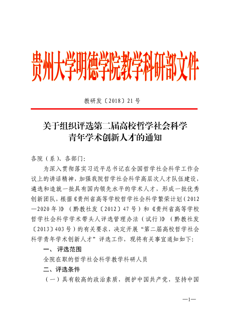 关于组织评选第二届高校哲学社会科学青年学术创新人才的通知