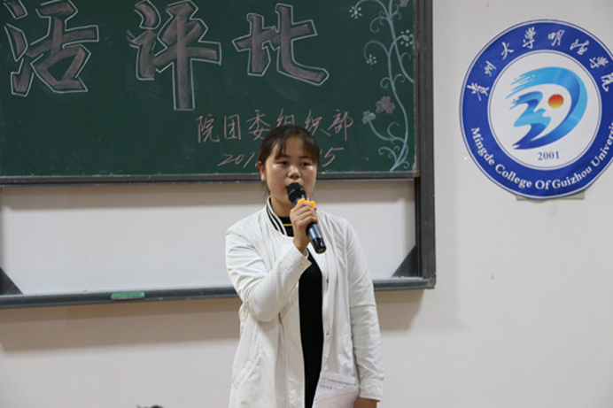 本次活动以民舞《美丽的神话》开场。活动一共分为两组,共有七个班级参赛。第一组分别是电商1703、电自1702、通信1701、土木1802。通信1701以有奖问答作为讲解开头,带动了现场氛围,介绍了时代榜样、社会主义核心价值观的三个方面24个字的含义等,并且展示了他们班开展的练习书法,组织剪纸等活动,然后展示了手工艺品水墨画。第一组选手解说完后,团委肖皓丰老师为第一组选手点评:首先这次团组织生活评比的内容是社会主义核心价值观,希望同学们熟记这24个字。这次活动的手工艺品精美,丰富多样,有山水画,高铁动车等,从这次活动看到了大学生的身影,看到了同学们的优点和缺点,最后鼓励同学们再接再厉,争取下次做得更好。点评过后,木管协会带来笛子独奏《枉凝眉》,充分展示出了中华文化的魅力。