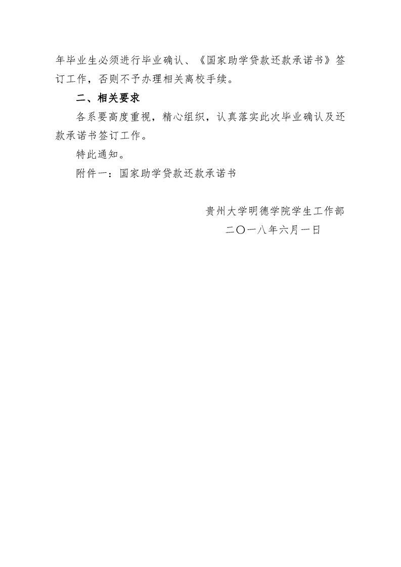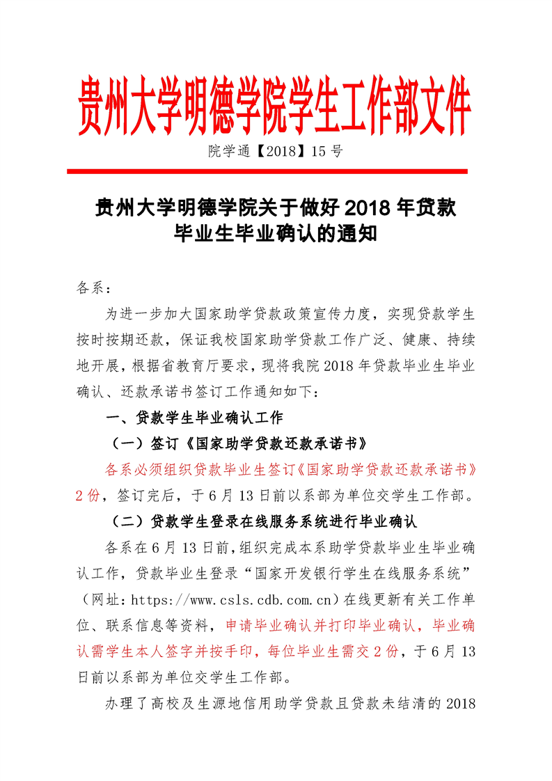 贵州大学明德学院关于做好2018年贷款 毕业生毕业确认的通知