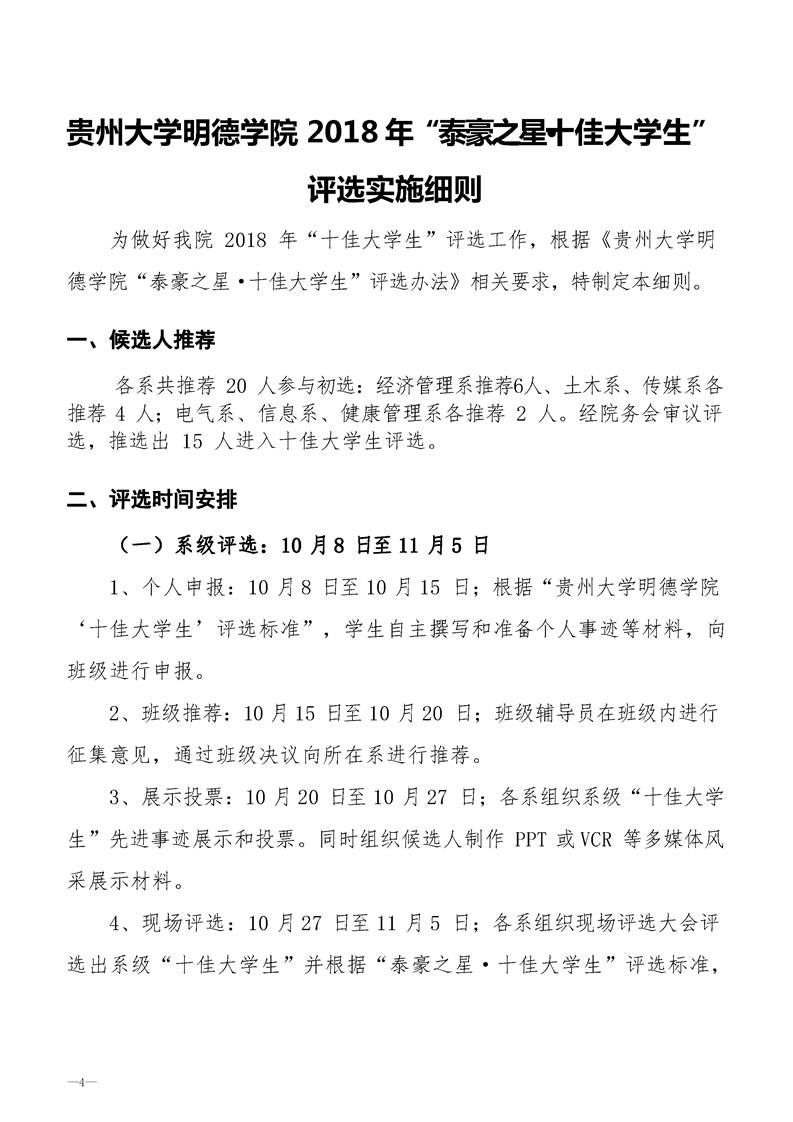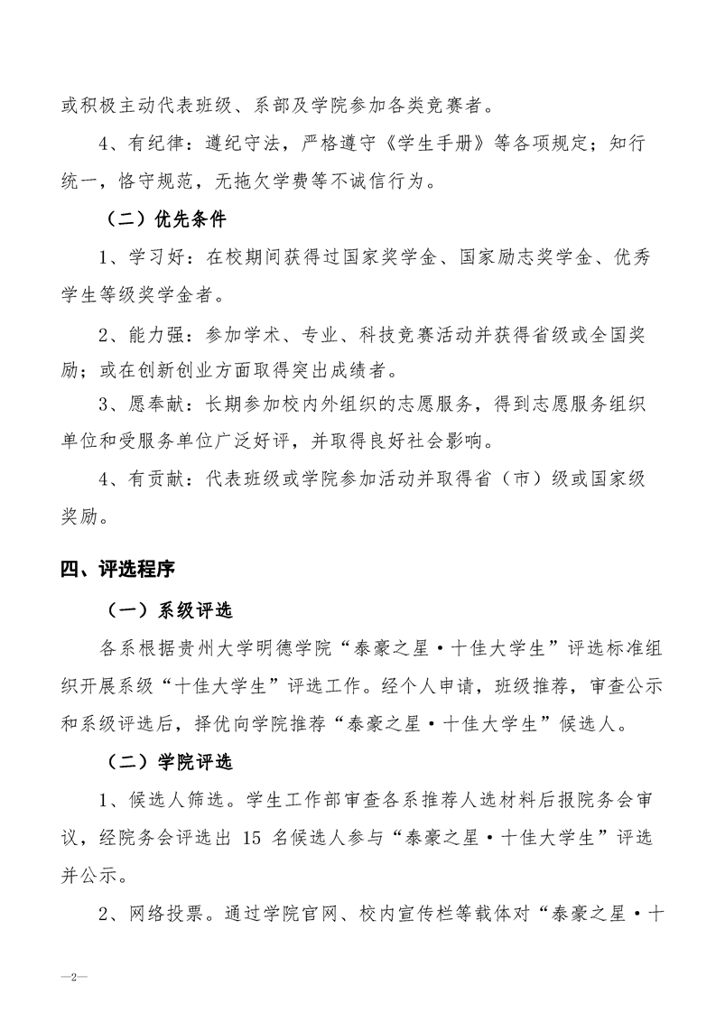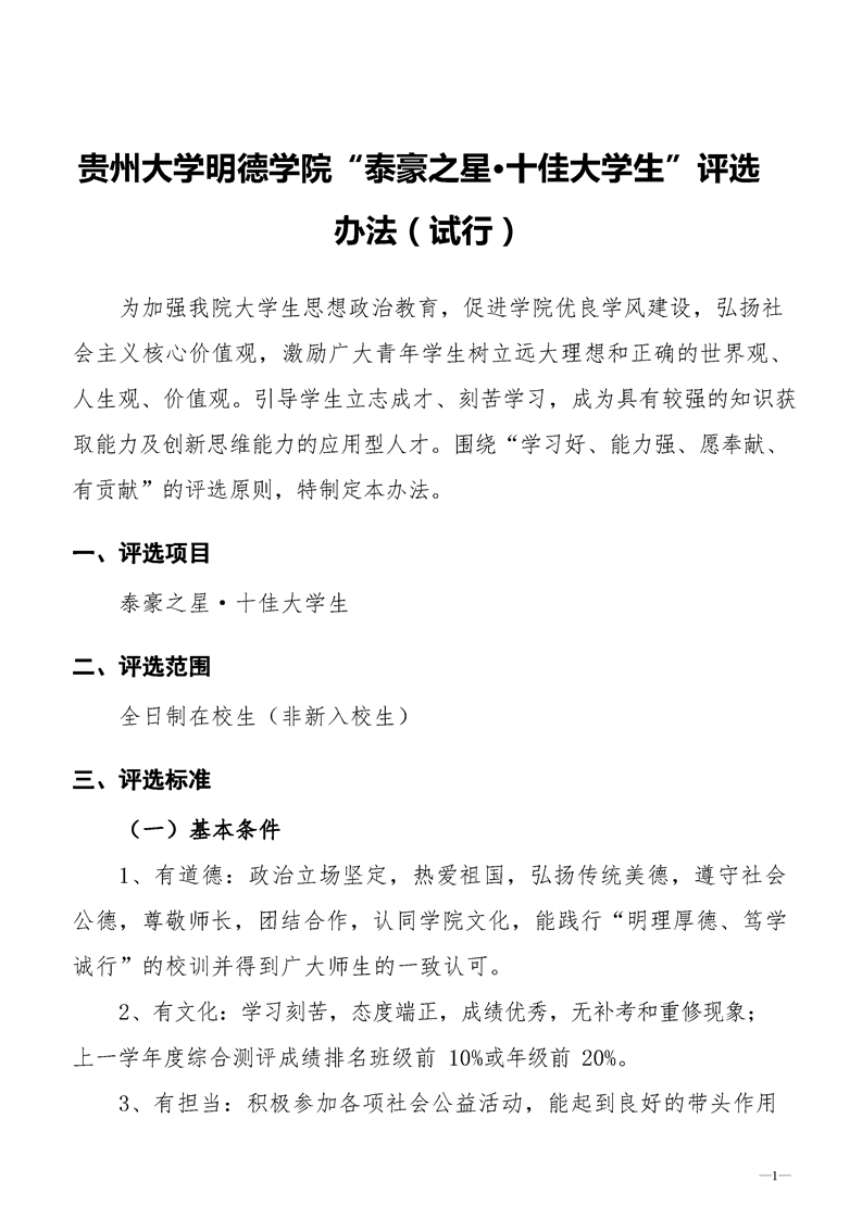 贵州大学明德学院“泰豪之星·十佳大学生”评选 办法(试行)