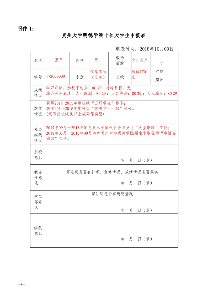 关于做好贵州大学明德学院2017-2018学年国家奖学金评选工作的通知
