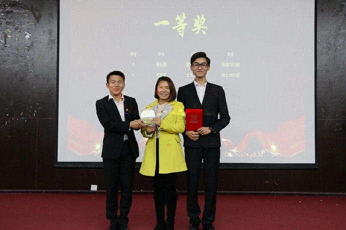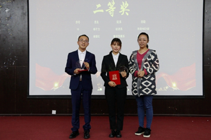 比赛在同学们热烈的掌声中拉开帷幕。比赛正式开始,主持人介绍了活动流程及评分标准,各位选手先对自己做的PPT简历进行分析讲解,然后进入抽题问答环节。参赛的十四位选手都准备得十分充分,他们分别从简历的个人基本信息、教育背景、校园经历、曾获荣誉、学习经历、自我评价等要素进行特色讲解。随后,招生就业处副处长曾林老师对本次活动作了点评:学生能做出一份漂亮的有特色的简历是非常重要的,简历做好了就不怕得不到想要的工作。分数统计时间段,主持人与同学们做脑筋急转弯小游戏。之后主持人公布获奖名单,很巧的是这次比赛因为分数相同出现了两个一等奖(骆礼超、夏榆富)、二等奖2人(谢登红、杨子力)、三等奖3人(谭松、陈伍、朱坤林),曾林老师和肖蕊老师分别为他们颁奖并合影留念,活动最后,主持人做结束语:希望本次大赛对同学们能有所帮助,成为你们步入职场的有效助推力,为信念开启一扇窗户。所有参赛选手及评委嘉宾合影留念。主持人宣布活动圆满结束,观众有序离场。