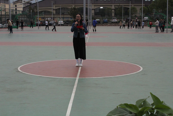 系主任唐婷老师致开幕词,她讲到:希望同学们能在此次“迎新杯”篮球赛中赛出水平、赛出成绩,各个班级都应秉承友谊第一、比赛第二的原则认真完成此次比赛。