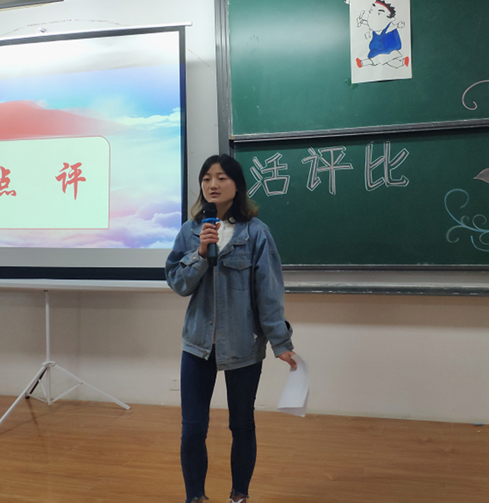 第一组解说员解说完后,徐卫燕同学为第一组选手进行点评。首先对每位解说员进行了鼓励,其次点出各组ppt的妙处:这次活动的手工艺品精美,丰富多样,有书法、手工松树、小船等。从这次活动看到了大学生的青春活力,看到了同学们的优点和缺点。点评过后,街舞队同学为我们带来街舞表演《our own house》,充分展现了大学生的青春活力。