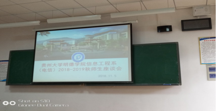 立教作贡献,树人为根本。在这个金桂飘香,秋风送爽的季节里,贵州大学明德学院信息工程系于2018年11月5日中午12:30分别在A515、A516、A517、A518教室召开了2018-2019学年第一学期期中师生座谈会。参加本次座谈会的老师有信息工程系系主任江奇峰老师、党总支副书记王朋虎老师、教务董秀云老师、教务卓莉老师及各年级辅导员、各班班主任,学生有计科、电信、通信、网络4个专业23个班级的班长、团支书、学习委员及各班学生代表。此次座谈会以老师与学生之间进行面对面交流谈话的方式,交流学生自己在学习、生活、工作、心理等的一些看法和见解,以此来解决一些学习和生活中所面对的问题,旨在加强师生交流,按照同学们的反馈状况及时跟进教师教学进度和授课方法,给大家营造一个良好的学习生活氛围。