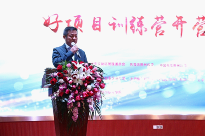 首先蒙永福校长对关注大学生创业的党委领导表达了谢意,对经过各层选拔参赛的选手表达了祝贺。对训练营提出了几点建议:当代青年正身逢盛世,应不辜负祖国和人民的信任,要脚踏实地,奋发进取,努力学习,刻苦专研,努力提高创业知识与技巧,把青春和智慧汇聚到创造美好未来的无懈奋斗中。随后,创业学生代表——贵州城市职业学院学生代表路陆亚上台发言,和大家分享自己的经历。接着,创业导师代表、天使投资人詹瞻发言道:创业可以实现自己的能力,创业辛苦,不付出幸苦创业不会成功,成功也未必守得住,但是有付出就一定有收获。管委会副主任潘军上台致词:提到创业不容易,希望训练营能对每个大学生都具有一定价值。贵安新区经发副局长王燕上台致词:希望通过这次活动让大学生创业团队发展起来,大力培养、发现、选拔优秀的创业创新人才,加速推动更多的创业团队,此次活动能为大学生搭建创业创新所需要的资源平台。最后,共青团贵州省委学校部副部长韦卫上台发言:训练营能给各位具有创业精神的大学生提供能量与支持,帮助大学生完成创业创新的个人梦想。至此,2018“天翼云杯”贵州省大学生云创业大赛之好项目训练营开营仪式由贵州省城市职业学院校长蒙永福、管委会副主任潘军、贵州省委学校部副部长韦卫、贵安新区经发局副局长王燕、中国电信贵安新区分公司副总经理贺军、创业导师代表詹瞻、创业学生代表陆亚7位嘉宾共同开启开营仪式。