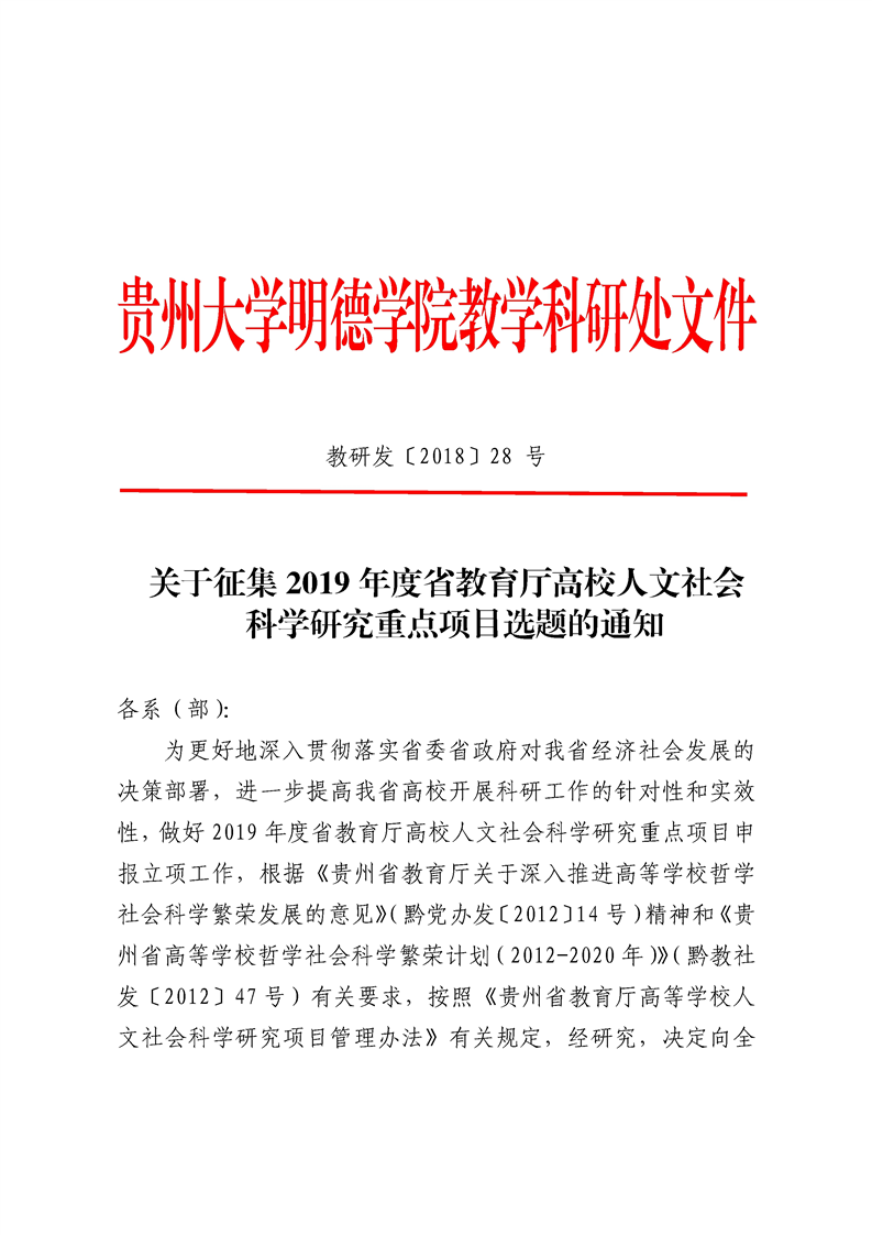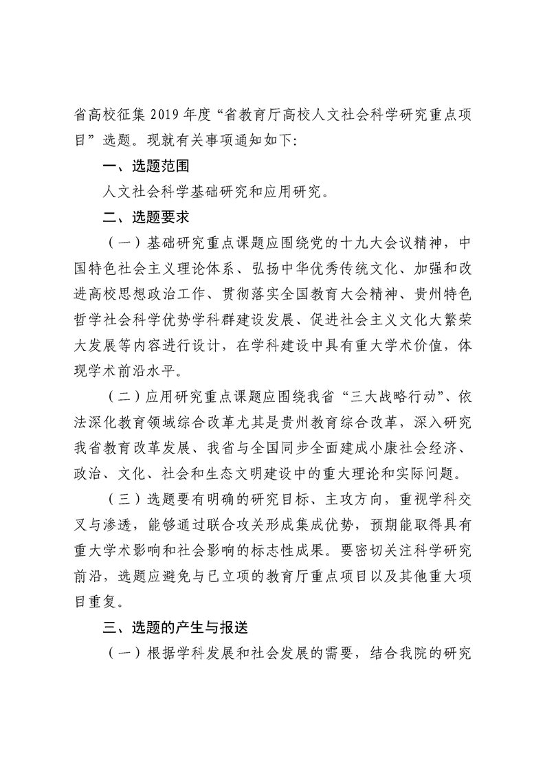 关于征集2019年度省教育厅高校人文社会科学研究重点项目选题的通知
