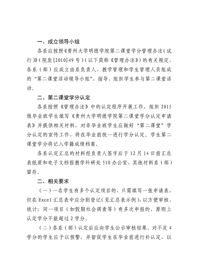 贵州大学明德学院关于2018-2019学年第二课堂学分认定工作安排的通知