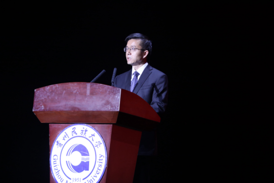 接下来是省教育厅副厅长鞠洪为本届大学生文化艺术活动月致辞。他谈到:“此次活动的开展是对花溪大学城文化的创新,展示了贵州民族文化的丰富多彩,深化和传承民族文化教育,加强各高校之间民族文化的交流与合作。展示当代大学生的新形象和青春风采,促进当代大学生德、智、体、美、劳全面发展。”随后贵州日报报业集团党委副书记,总编辑万群介绍本届大学生文化艺术活动月的情况。他说到:“活动从民族文化层面展现了多彩贵州有多彩,以活动为纽带、创意为灵魂,引导广大大学生为实现国家富强,民族复兴,人民幸福的中国梦而勤奋学习,励志成才,展现当代大学生自强不息的精神面貌。”