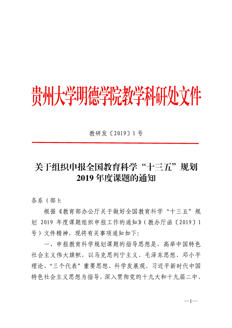 关于组织申报2019年贵州省教育科学规划课题的通知