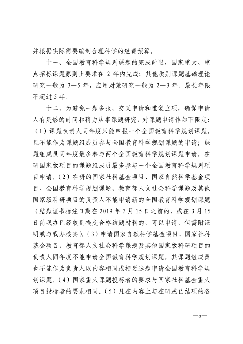 关于组织申报全国教育科学“十三五”规划2019年度课题的通知
