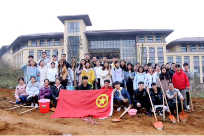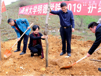 新闻网讯(团委/罗一檾 团宣/孙悦 摄影/徐晨飞)3月12日,我院在花溪大学城校区图书馆旁植树山坡举行“护绿在当下,得宜在明德”植树活动。出席本次植树活动的领导有贵州大学明德学院院长王颖华、贵州大学明德学院党委书记郭林桦、贵州大学明德学院副董事长谢田凯、贵州大学明德学院常务副院长罗卫东、贵州大学明德学院副院长谢静、贵州大学明德学院党委副书记金明辉及各系师生代表。