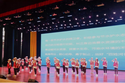 随后是志愿者发起的节水护水倡议,我院各系师生代表在声情并茂的表演中认真学习贵州水质文化。接着来到“摇一摇”线上互动环节,武斌儒先生为获得游戏前五名颁发贵州省北极熊实业有限公司准备的精美礼品。一曲由现场手光灯相伴的《阳光总在风雨后》将活动引入第二阶段游戏环节,我院学生热情高涨,积极参与游戏互动。紧接贵州轻工职业技术学院老师带来《赤水情》独唱。最后主持人邀请各领导上台进行“水美贵州杯·保护家乡河”演讲大赛活动启动仪式。领导合影留念,观众有序离场进行室外活动