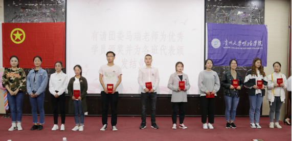 本次活动由共青团贵州大学明德学院委员会主办、院团委组织部承办。活动在民舞队的舞蹈《琵笆行》和全体学员奏唱的《光荣啊,中国共青团》一曲中拉开帷幕。马瑞老师在奏唱结束后讲到:在此要提出三个感谢,分别是对到场嘉宾及评委来参加此次活动、工作人员的辛勤付出和在座学员坚持学习下来并顺利结业的感谢。还说到结业的学员是党的后备军,要主动向党靠拢。最后勉励大家--越努力,越幸运。