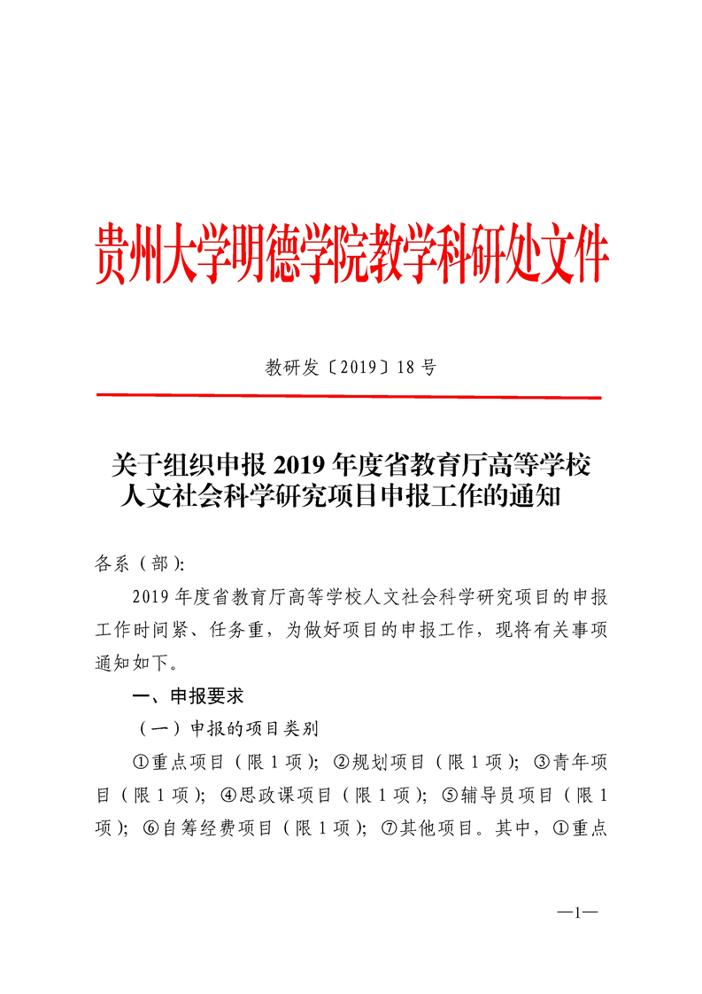 附件1:省教育厅办公室关于2019年度省教育厅高等学校人文社会科学研究项目申报工作的通知 .doc