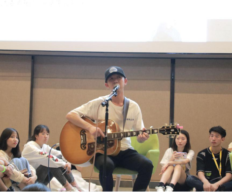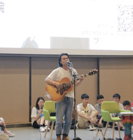 随后,在柔和的灯光和悠长的弦乐中,西凉幡子一首《四月》开启了此次属于读者们美妙的音乐之旅。他将自己的经历写进歌里,用歌声把现场的听众带进他的故事里,感受着大理四月的浪漫与美妙。唱完歌,幡子与同学们分享了他在大理度过的美好时光,并告诉同学们一定要去看一看四月的大理。随后,拨弦弹唱大冰最爱的一首歌《乌兰巴托的夜》及原创的《陌生女人的告别》民谣歌曲。