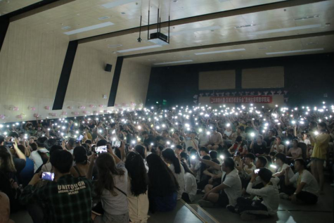 低音炮書梵继续献唱,性感嗓音开场问好便引得全场尖叫。一曲原创《两方》告诉同学们没有过不去的坎,全当是大梦一场。接下来他们一起合作演唱《那个短发姑娘》、《阿香火锅店》等民谣歌曲。一首首动听的歌曲,一次次打动着读者们的心,最后,以大冰的歌曲《陪我去可可西里去看海》结束了此次音乐会。