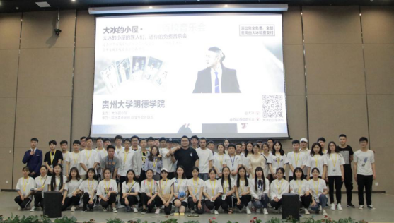 活动开始,主持人最先请出“大冰背后的男人”麦先生。他说“大冰的小屋”是流浪歌手一个温暖的家,他给同学们分享了野生作家大冰,以及大冰小屋歌手们。接下来,让到场的读者们站拢合影,将现场炙热高涨的热情分享给未到现场的大冰。