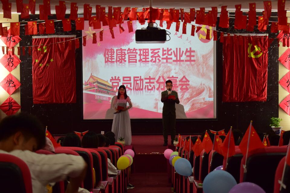 新闻网讯(党支部 李双英)纪念新中国成立70周年及五四运动100周年,进一步贯彻落实习近平总书记在纪念五四运动100周年大会上的重要讲话精神,中共贵州大学明德学院健康管理系总支委员以“以青春之我,创造青春之中国,青春之民族”为主题,2019年5月23日在一号报告厅举办“毕业生党员励志分享会”宣讲活动。参加此次活动的嘉宾主要有健康管理系总支副书记佟春雨、电气系辅导员葛老师、学生党支部书记刘圣南老师、团总支书记张丽老师、杨鹏老师、陈旭老师、王祖艳老师、毛田米老师,其他各系党支部代表以及我系的全体党员、发展对象、积极分子及各班代表。