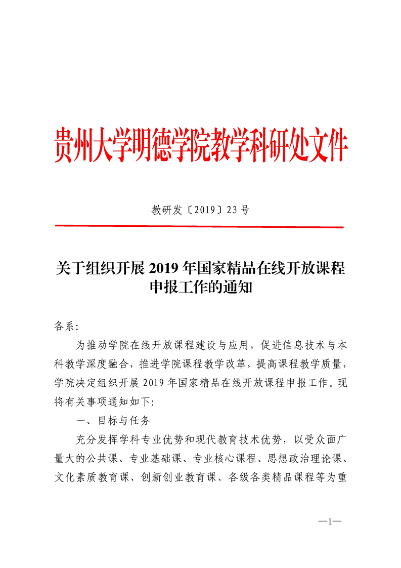 附件1:教育部高等教育司关于开展2019年国家精品在线开放课程认定工作的通知(教高司函〔2019〕32号).pdf