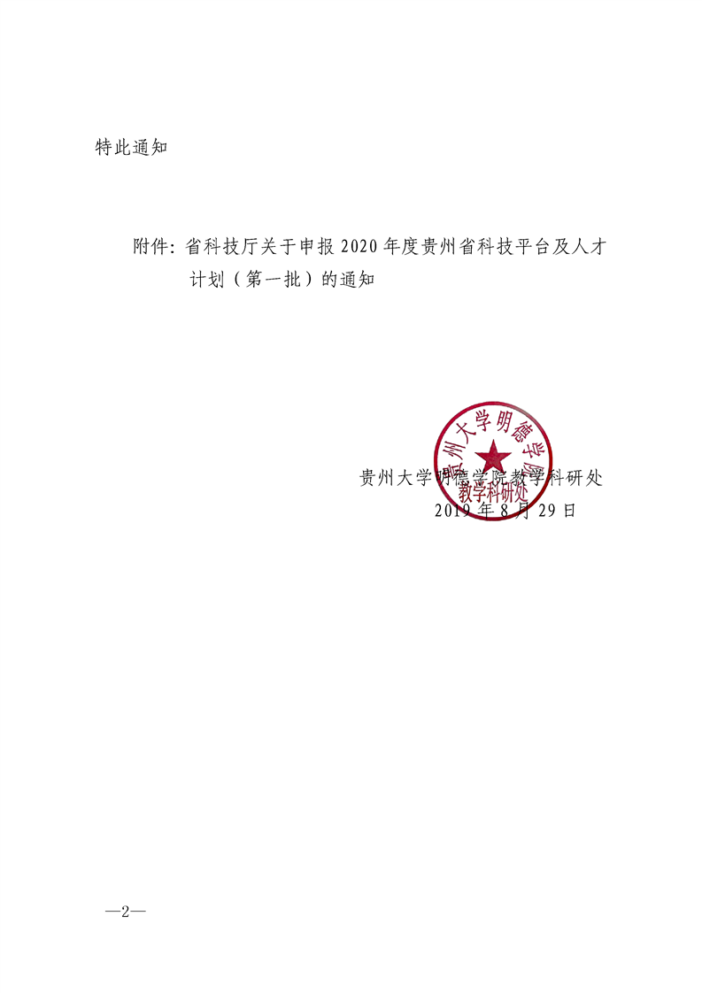 关于转发省科技厅关于申报2020年度贵州省科技平台及人才计划(第一批)的通知