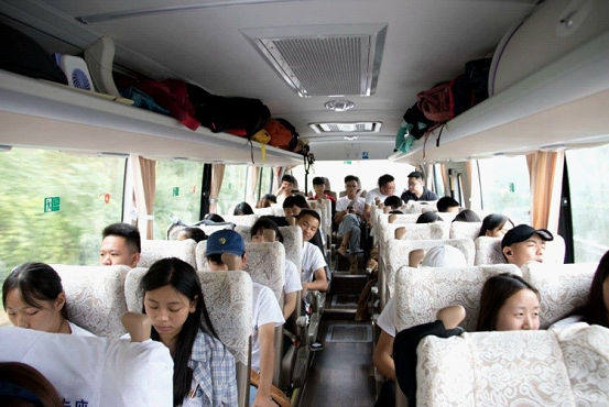 行程中,为使气氛更为活跃,主席团组织全体歌唱《我和我的祖国》,历经了4个多小时的车程,实践队到达目的地。