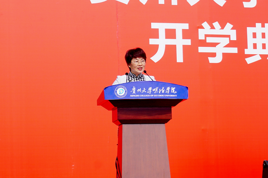 大会进行第二项,领导寄语。首先是党委副书记令狐彩桃致辞:大学是学习知识,修养心性,完善人格的地方,同学们在大学期间,要真正从精神上和学识上走向成熟,成为未来国家和社会的栋梁之才。其次是执行董事邱军致辞:大学,就是要不断发现和了解自己的兴趣、才华、禀赋,发现和了解自己的弱点和不足,这是一个为未来做准备的过程,是发现自己、雕塑自我的旅程。最后是院长王颖华致辞:希望同学们为了共同的中国梦、中华民族伟大复兴的梦、将明德学院建设成为中国“双创”一流应用型大学的梦而共同奋斗。领导寄语结束。