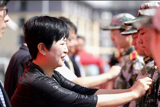 大会进行第三项,全体新生和出席领导一起进行开笔之礼——正衣冠、感恩礼、赠笔礼,并进行佩戴校徽仪式。