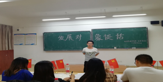 经济管理系学生第一支部于2019年9月16日在F201开展了第九期发展对象谈话,此次谈话由何爽同志主持召开,第九期发展对象以及第八期部分发展对象参与了本次谈话。