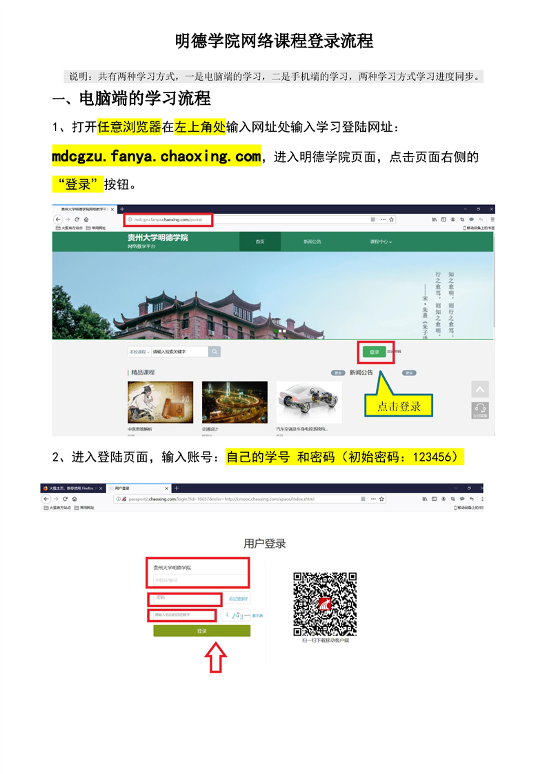 明德学院网络课程登陆流程