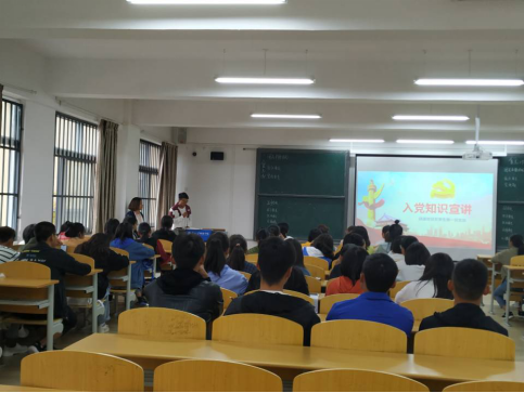 新闻网讯(党支部 李双英)我支部为让2019级新生正确认识入党问题,树立正确的入党动机,详细了解入党流程,争取做合格党员。2019年9月17日在f406教室,特由党支部支委陈正杰同志、卯升粉同志、鄢天龙同志、黄昌满同志举行此次新生入党宣讲,展开了扎实的党政教育工作。