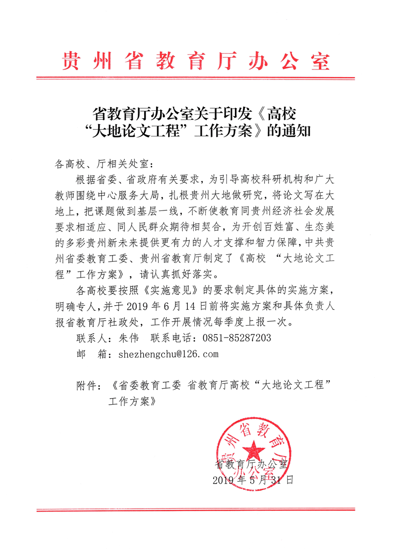 关于转发省教育厅办公室关于印发《高校“大地论文工程”工作方案》的通知