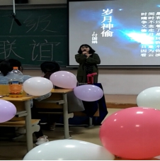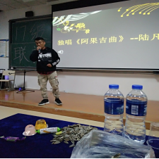 在《岁月神偷》的嘹亮歌声中,付国娟同学用她的歌声诠释了她的见解和对班级爱意以及对唱歌的喜爱,接着陆凡同学独唱《阿果吉曲》。