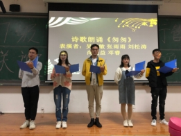 好听的歌曲总是让人陶醉其中,文有钱同学二胡独奏《听妈妈讲那过去的事情》,展示了他特有的才艺和他对二胡的挚爱。时光荏苒,提醒着我们勿虚度光阴,对眼前和前途做出思考,吴琴敏、刘松涛、张雨雨、邓睿、尚光益五位同学朗诵诗歌《匆匆》。