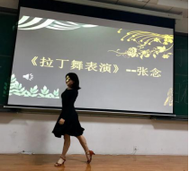 张念同学给大家带来了精彩绝伦的拉丁舞表演,让全场沸腾,她的舞姿似火燃烧,舞出新的风采。表演过后,班主任杨瑞老师为同学们做了考研分享,分享了她当时考研的经历,并希望同学们能够好好学习,不忘初心,确定方向。