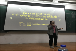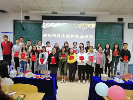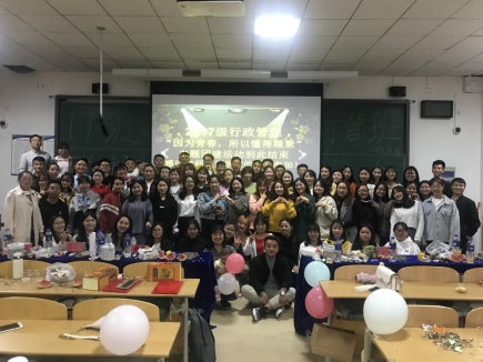 2019年10月15日,贵州大学明德学院2017级行政管理专业,一班与二班的学生们在B栋508教室举行班级联谊晚会。出席本次晚会的嘉宾有行管教研室主任邱艳萍老师、财务管理教研室主任马良艳老师、市场营销教研室主任孙畅老师、辅导员韦雅菁老师、辅导员郭梦轩老师、班主任杨瑞老师。