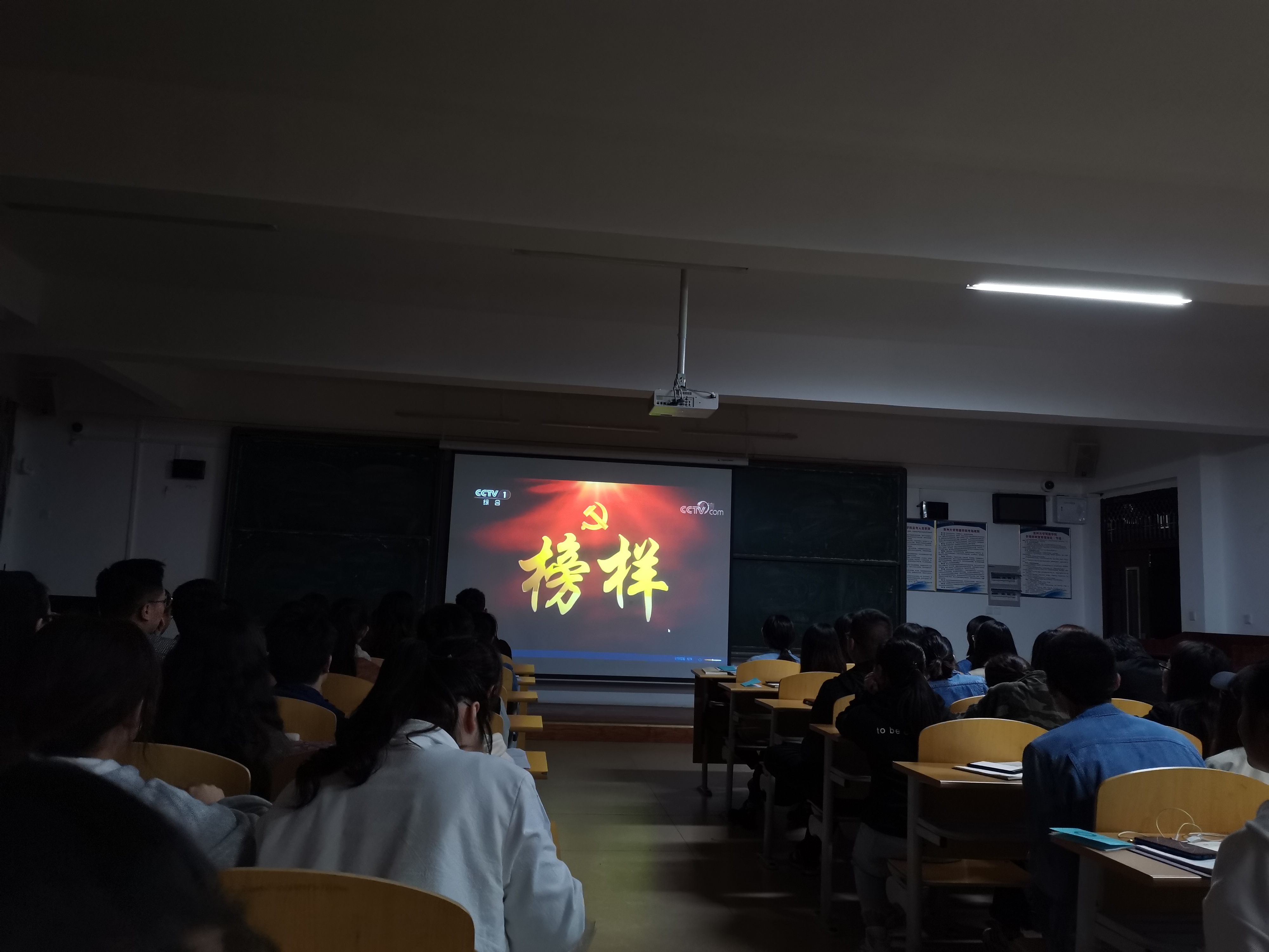 2019年10月22日中午18:00在C407教室,经济管理系学生第二党支部组织第9、第10期党员发展对象集体观看《榜样4》活动。